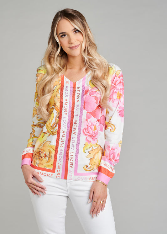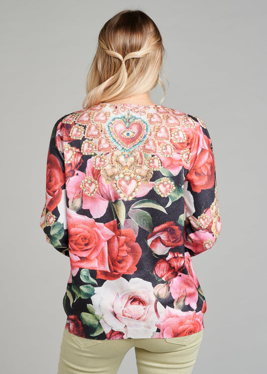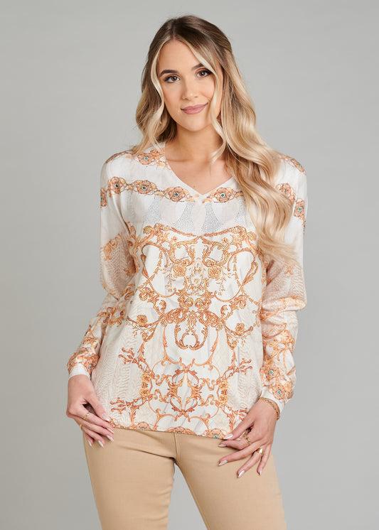 Pullover mit V-Ausschnitt und Strass Veredelung