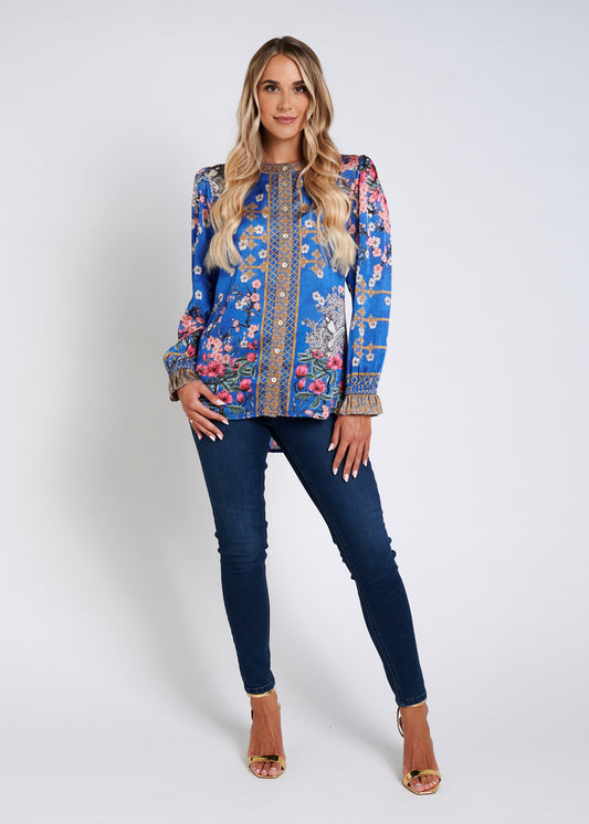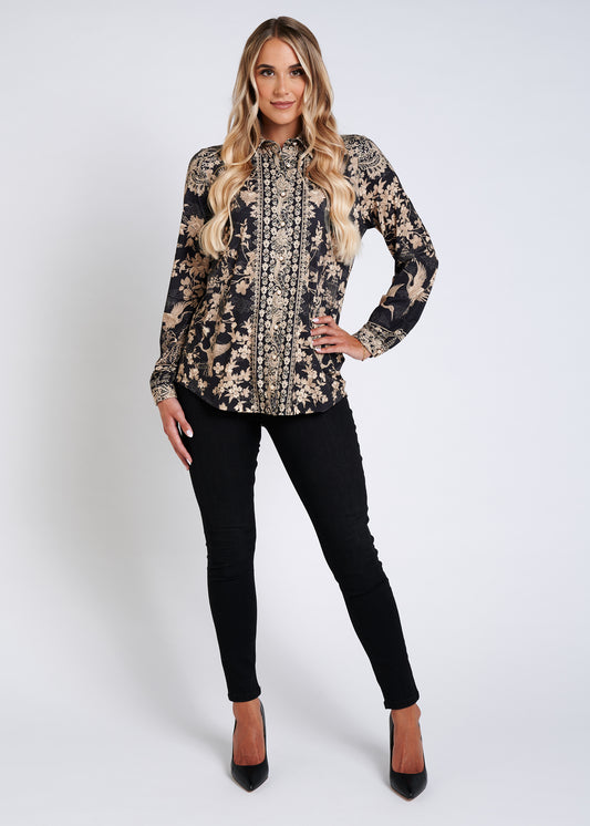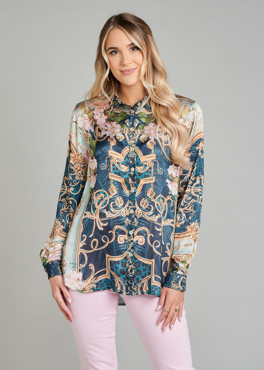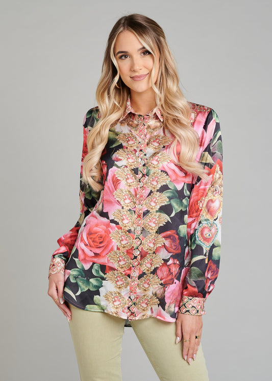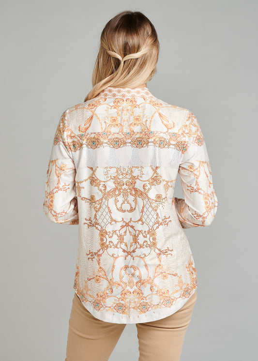 Soft-Touch Blouse With Pockets And Rhinestone Finishing
